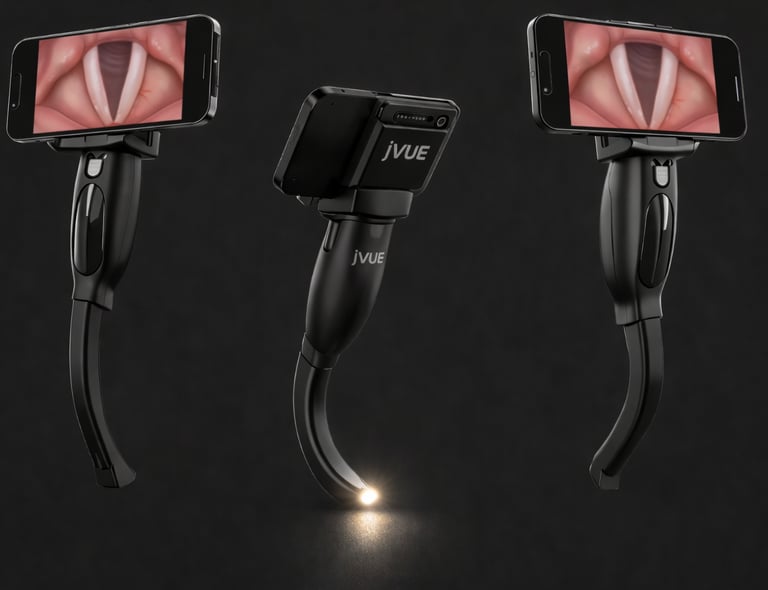The next generation in video laryngoscopy - JVUE is the first smart-phone enabled laryngoscope device (patent pending) to provide clear real-time airway visualization with integration into EMR or off-site video & image storage